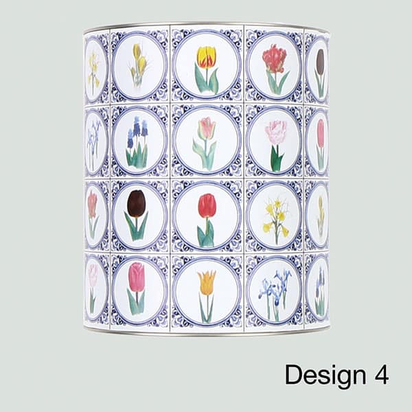 | Kies uw ontwerp | Design 1 – Grachtenhuisjes, Design 2 – Modern, Design 3 – Bloemenslinger, Design 4 – Deftslblauwe tegels, Design 5 – eigen ontwerp |
