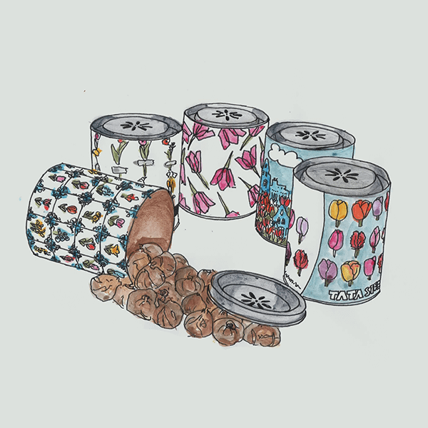 Kokers Medium met bloembollen naar keuze , 25 tulpen of andere bloembollen in medium koker in diverse moderne ontwerpen. Deze koker is ook leverbaar in een compleet eigen ontwerp vanaf 50 stuks.