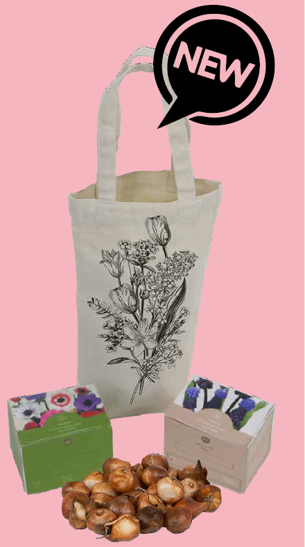Draagtas van katoen met 2 kleurige doosjes met bloembollen